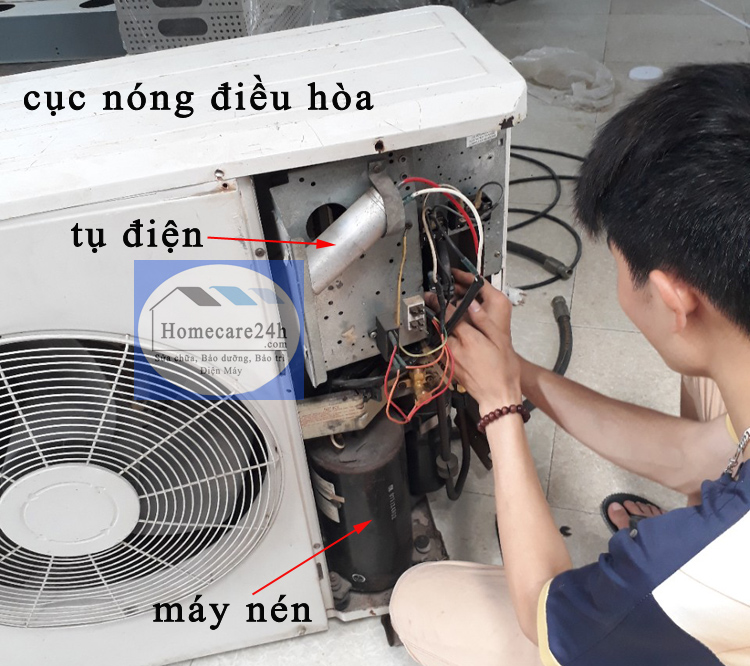 Cục nóng điều hòa có cấu tạo khá phức tạp và thường được lắp đặt ở các vị trí hiểm trở, khó tiếp cận. Với những người không có kinh nghiệm thì việc tiếp cận cục nóng phía bên ngoài để thực hiện đấu tụ cho điều hòa là việc khó khăn hơn hơn bao giờ hết. Đấy là mình còn chưa kể điến việc hở điện ở cục nóng điều hòa. Khi thấy khó khăn, bạn hãy từ bỏ ý định tự tay đấu tụ điều hòa. Bạn đừng mang sự nguy hiểm cho mình, hãy gọi thợ sửa điều hòa ngay để được trợ giúp. Hoặc bạn có thể liên hệ 0978.850.989 để được tư vấn thêm.