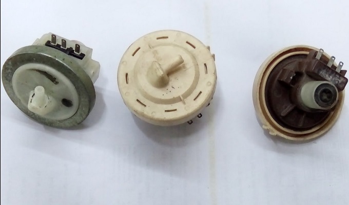 Công tắc cảm biến có nhiệm vụ điều chỉnh mức nước bên trong buồng giặt. Công tắc này nối với ống dẫn nước bằng nhựa, ống nhựa này nằm bên hông ở phía ngoài lồng giặt sâu gần tới đáy lồng.