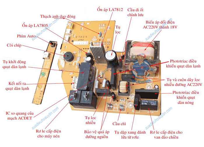 Đối với máy điều hòa cũ, chúng thường có thời gian hoạt động đã lâu vì vậy hệ thống mạch điều khiển của dàn nóng, dàn lạnh thường cũng đã kém, rất dễ bị hư hỏng ở mạch nguồn trên các bo mạch này do tụ hóa sử dụng lâu ngày hoặc đã suy hao, chúng có thể hỏng bất cứ lúc nào chúng ta không thể biết được, tuy nhiên đối với khách hàng thì cũng thường suy diễn nguyên nhân đến từ lần bảo dưỡng gần nhất mà thợ thực hiện và cho rằng việc bảo dưỡng có thể làm bắn nước vào mạch hoặc làm ẩm mạch điều khiển.