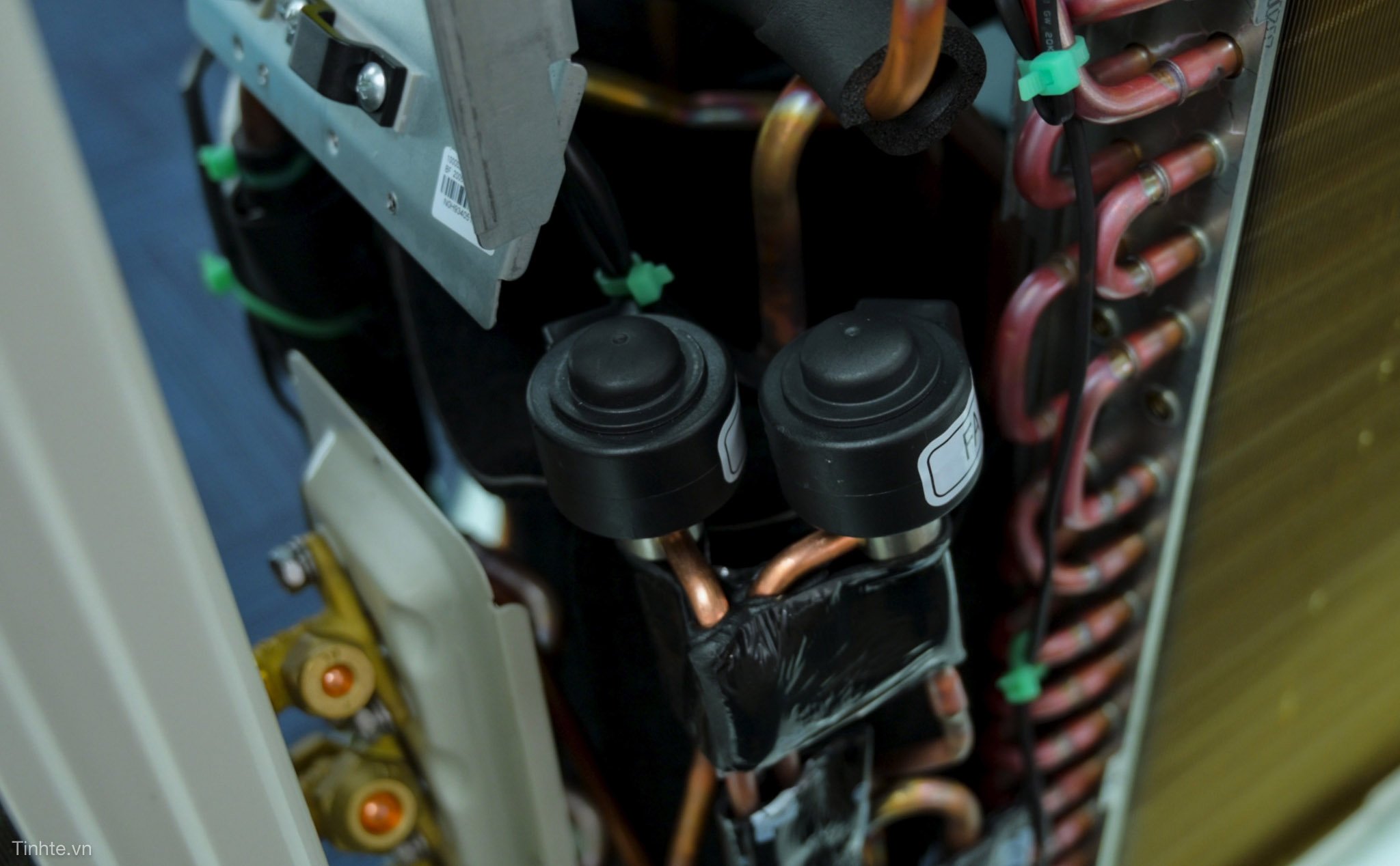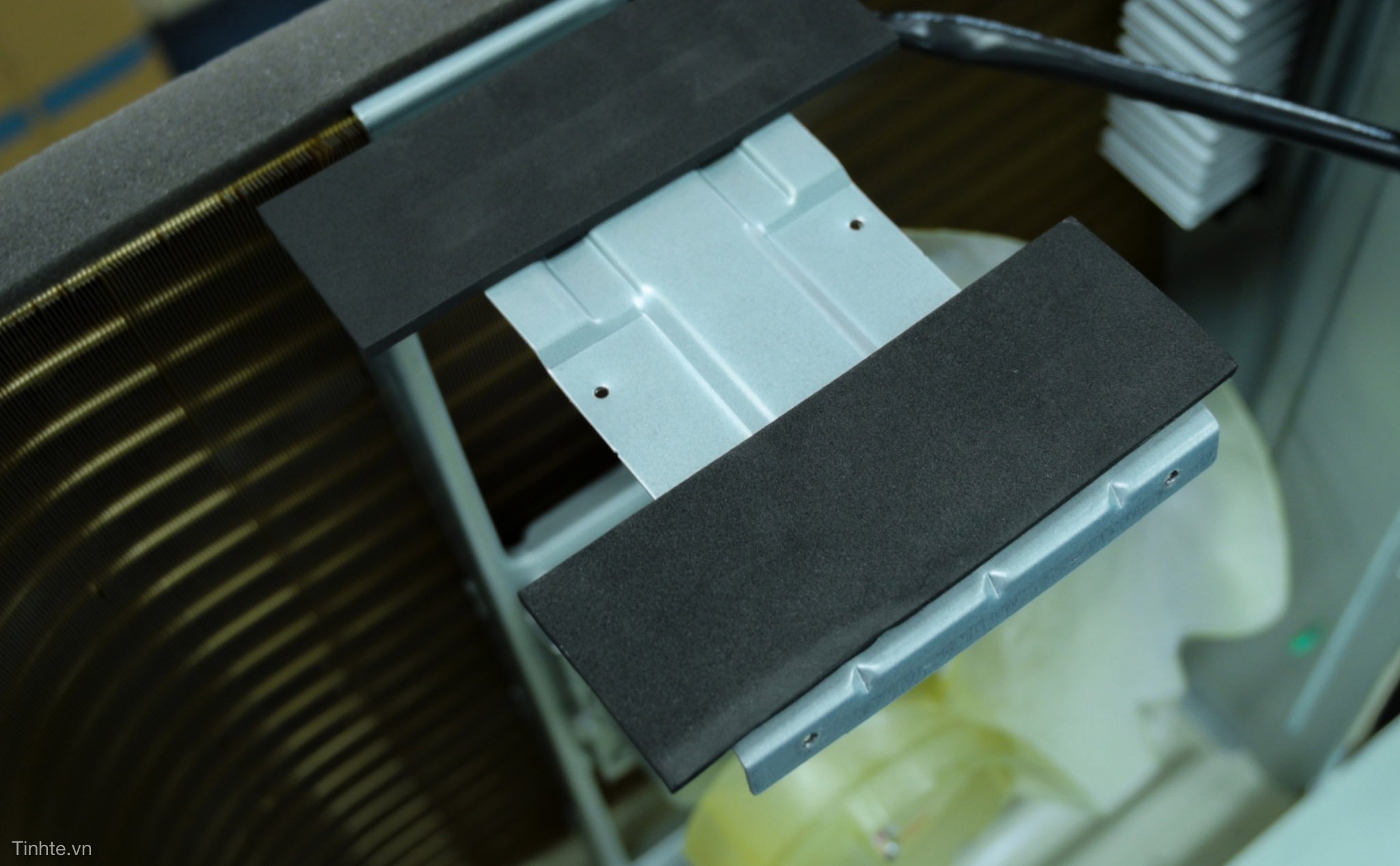 Bên trong dàn nóng sẽ có giải pháp cách âm theo nhiều lớp, máy nén cũng được bọc cách âm nên khi máy chạy thì vừa yên lặng vừa chống rung.